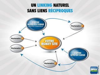 Le document présente les stratégies de création de contenu pour améliorer la visibilité sur Google, en soulignant l'importance des contenus textuels, populaires, partagés et cliqués. Il aborde également la nécessité d'une structure de site optimisée, de maillage interne et d'une stratégie de contenu externe pour maximiser le classement dans les moteurs de recherche. Enfin, il insiste sur l'importance de la création de contenus originaux et variés pour attirer des liens et du trafic.