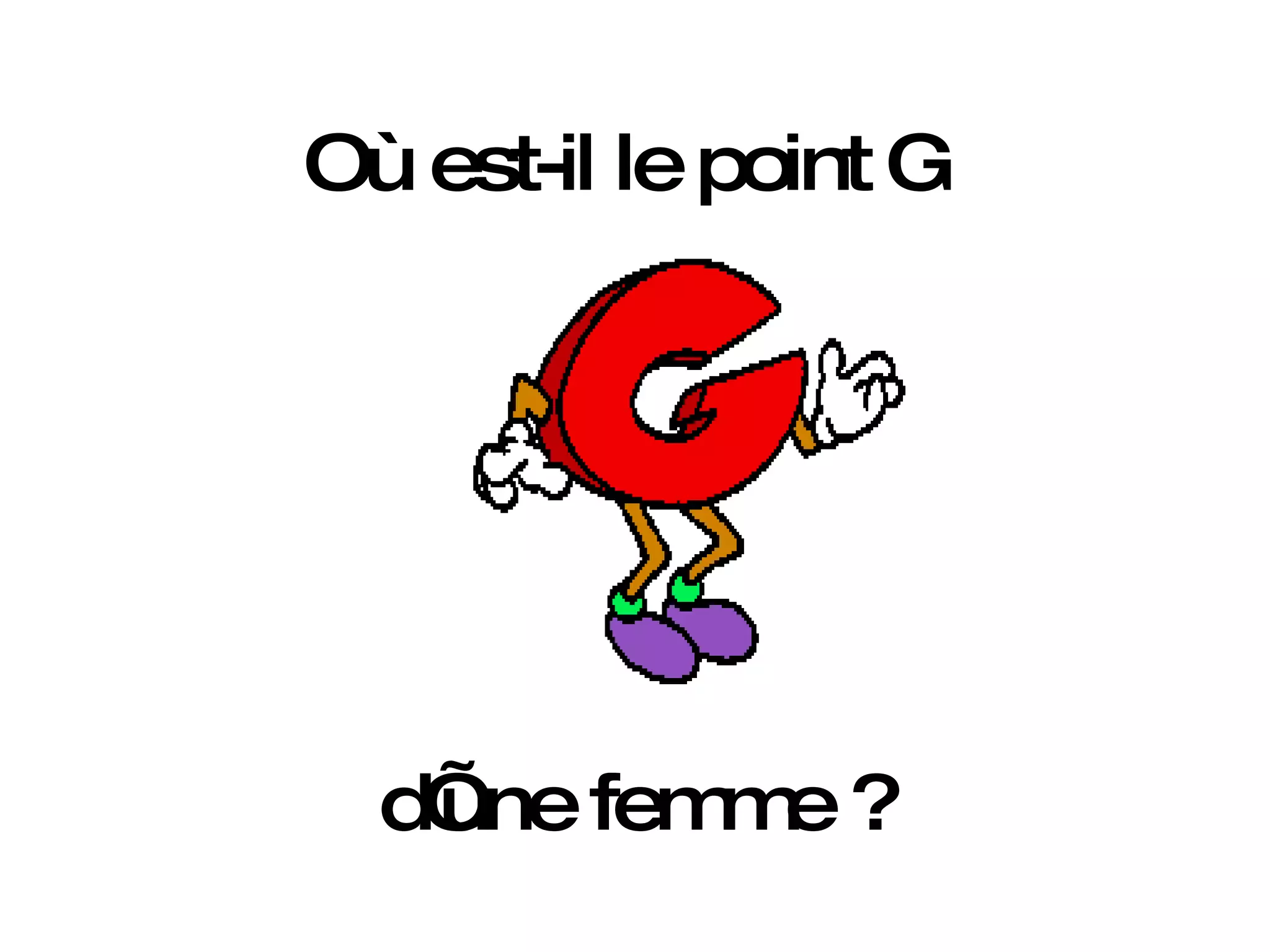 Le document aborde de manière humoristique la localisation du point G chez la femme, suggérant qu'il se trouve à la fin du mot 'shoppin'. Cette affirmation ludique se base sur l'idée que le shopping peut procurer un grand plaisir. L'ensemble du message joue sur les stéréotypes liés à la consommation et à la satisfaction personnelle.