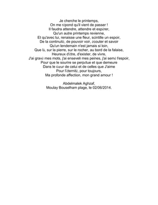Le poème 'heure du spleen' exprime une profonde mélancolie et une nostalgie pour le passé, évoquant des souvenirs d'insouciance et de joie d'enfance. L'auteur explore les thèmes des émotions humaines, des désirs inassouvis et de la quête de connaissance, tout en réfléchissant sur le passage du temps. Il conclut sur l'espoir de renouveau et l'importance de l'amour éternel pour ceux qu'il chérit.