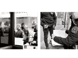 Le document décrit une scène chaotique dans un quartier où la misère sociale prédomine, entre migrants, toxicomanes et habitants, le tout sous le regard indifférent des autorités. Le ton est cynique, évoquant une forme de voyeurisme médiatique face à la souffrance humaine, tout en soulignant l'absurdité de la situation. Les personnages oscillent entre la réalité brutale et les tentatives de réinsertion ou d'assistance qui semblent dérisoires.