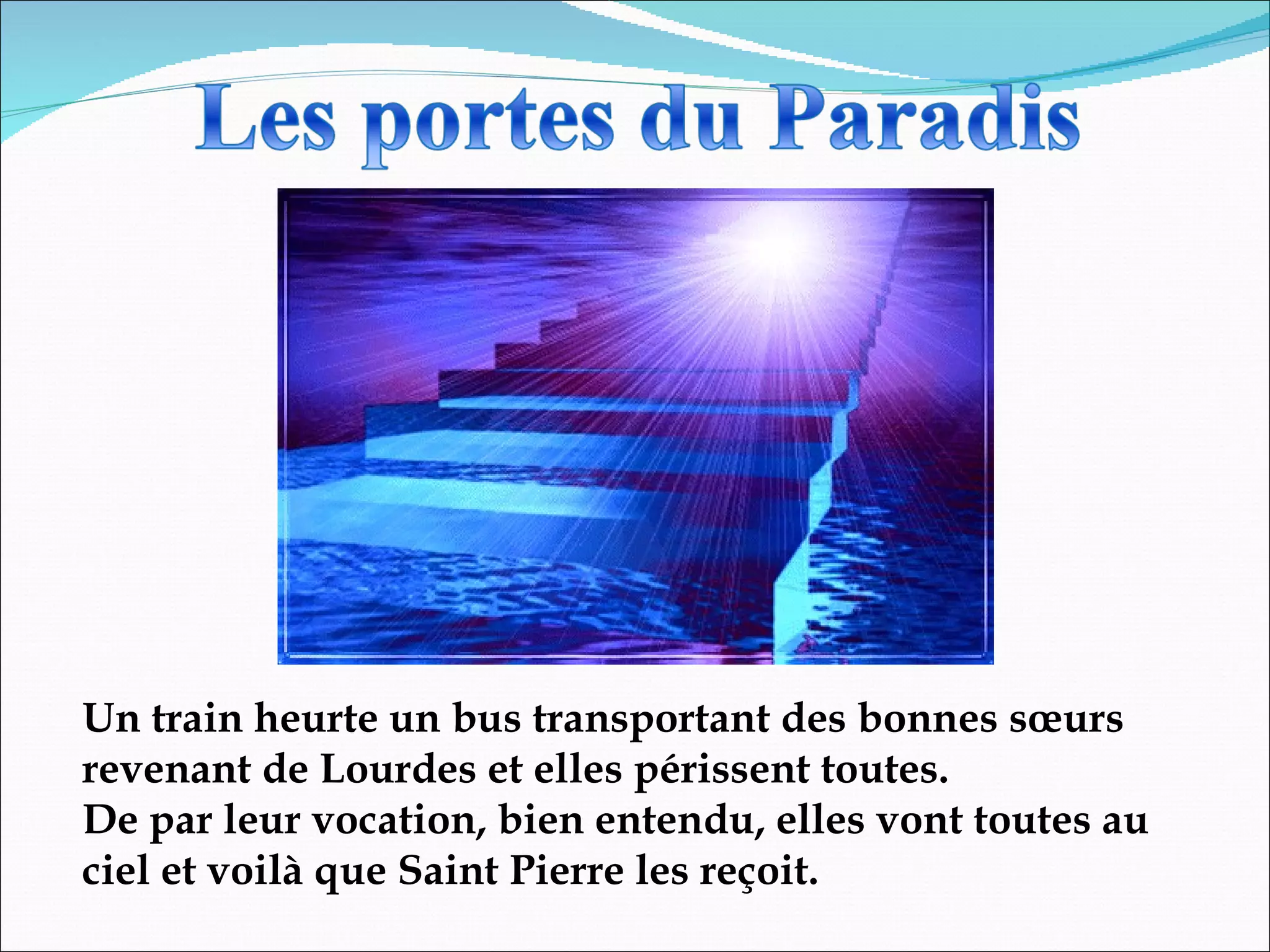 Un train frappe un bus transportant des bonnes sœurs, les tuant tous. À leur arrivée au paradis, saint Pierre leur pose des questions sur leurs expériences avec les hommes, ajustant leur accès au paradis en fonction de leurs réponses. L'une des nonnes se précipite devant les autres pour éviter un contact indésirable avec l'eau bénite après que l'autre sœur a quelque chose à y plonger.