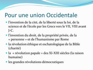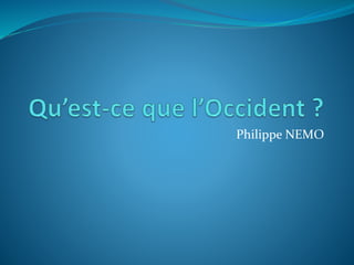 Philippe Nemo analyse l'histoire de l'Occident à travers cinq événements majeurs qui ont façonné sa culture et sa structure, notamment des contributions grecques, romaines, bibliques, et les révolutions démocratiques. Il questionne également la possibilité d'une union occidentale face aux défis de la culture et de l'éducation, soulignant l'importance d'une culture commune au-delà des simples échanges marchands. Enfin, il propose une réflexion sur l'organisation politique de cette union et sur les relations entre l'Occident et d'autres civilisations.