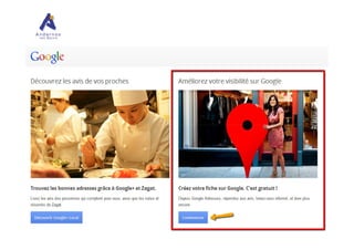 L'atelier numérique du 13 mars 2014 à la médiathèque se concentre sur l'importance de la visibilité en ligne, avec François et Aline comme animateurs. Le document présente des outils tels que Google Maps et Google+ Local pour améliorer la présence des entreprises sur Internet, ainsi que des conseils pratiques pour créer et optimiser des comptes et pages. Des stratégies de géolocalisation et d'optimisation des contenus sont également abordées pour maximiser l'impact sur les recherches locales.