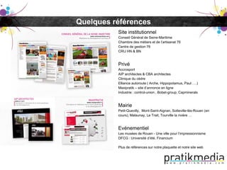 Pratikmedia est une agence avec 12 ans d'expérience spécialisée dans la création de sites internet sur mesure et la communication PAO, ayant plus de 200 références. Elle propose une méthodologie de projet qualitative avec un interlocuteur unique tout au long des phases de conception, développement et livraison. Les services incluent également la personnalisation des réseaux sociaux et la création de cartes de visite.