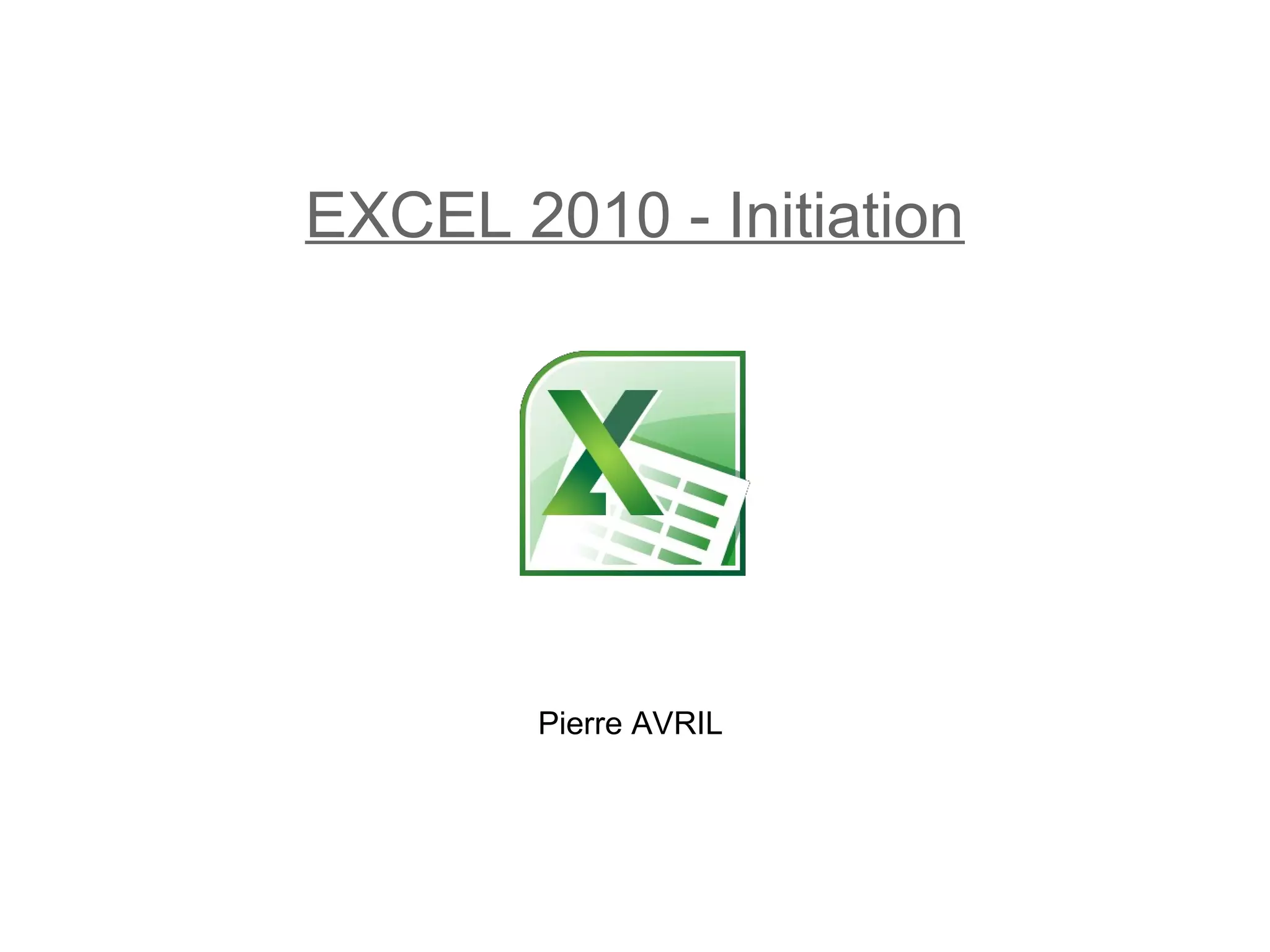 Le document est un guide d'initiation à Excel 2010, couvrant les concepts de base, l'interface, et les fonctionnalités essentielles pour démarrer avec le logiciel. Il aborde des sujets comme la création et l'enregistrement de classeurs, la saisie et le formatage des données, ainsi que l'utilisation des graphiques et des formules. L'objectif est de fournir une compréhension fondamentale pour analyser et présenter des données de manière efficace.