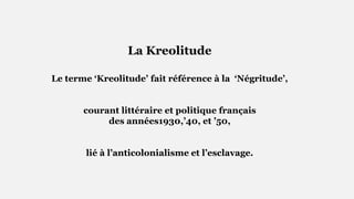 Le document traite de l'initiative d'inscrire les cultures créoles au patrimoine culturel immatériel de l'UNESCO, en soulignant les valeurs centrales de la 'kreolitude' qui favorisent la paix, la diversité et la solidarité. Il évoque également des réalisations passées de la culture créole reconnues par l'UNESCO et présente des informations sur des groupes et des personnes impliquées dans cette démarche. Enfin, le document est un appel à la reconnaissance globale des contributions uniques des cultures créoles à l'humanité.