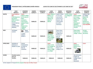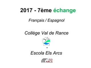 Le document décrit un échange scolaire entre le Collège Val de Rance en France et l'Escola Els Arcs en Espagne, impliquant 28 élèves de chaque établissement. Les échanges ont eu lieu en juin et septembre 2017, comprenant diverses activités culturelles et éducatives, ainsi que des rencontres entre les élèves. Des préparations ont été effectuées avant les voyages, incluant des présentations vidéo et des échanges de fiches.