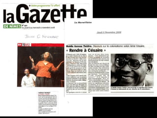 Le document aborde le pouvoir poétique et politique du discours d'Aimé Césaire sur le colonialisme, une œuvre d'importance actualisée qui questionne l'histoire et les valeurs contemporaines. La pièce, théâtralisée pour être accessible, est destinée à des publics scolaires pour susciter la réflexion sur l'histoire et son impact. Elle est produite par la compagnie Paraboles et le théâtre de la citadelle, et peut être introduite lors d'événements commémoratifs liés à la francophonie et à la lutte contre le racisme.