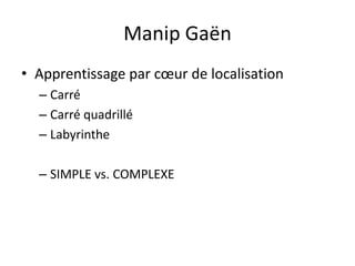 Le document aborde des expériences sur la mémoire spatiale et le maintien de l'information visuelle, explorant des tâches de mémorisation simples et complexes. Il décrit des manipulations impliquant des jugements de couleur et de parité avec des participants motivés effectuant diverses tâches de rappel. L'accent est mis sur l'interaction entre la mémoire visuelle et des processus cognitifs tels que l'apprentissage par cœur et la suppression articulatoire.