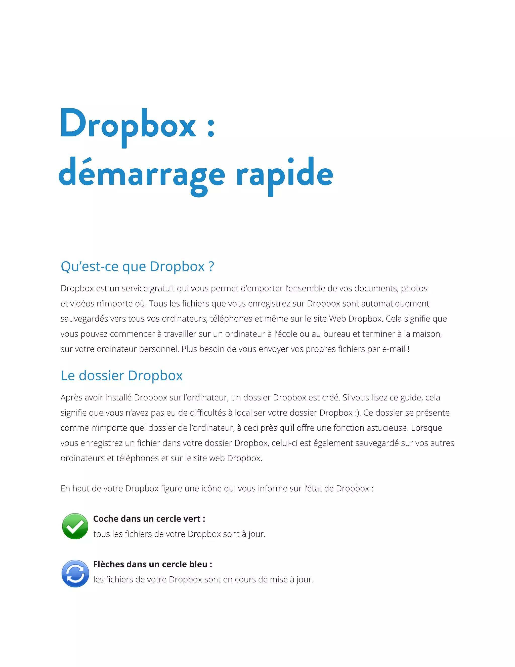 Dropbox est un service gratuit qui permet de sauvegarder et d'accéder à vos fichiers depuis n'importe quel appareil. Il offre des fonctionnalités de synchronisation automatique, de partage de fichiers et de gestion des versions. Les utilisateurs peuvent également accéder à Dropbox via des applications mobiles et le site web.