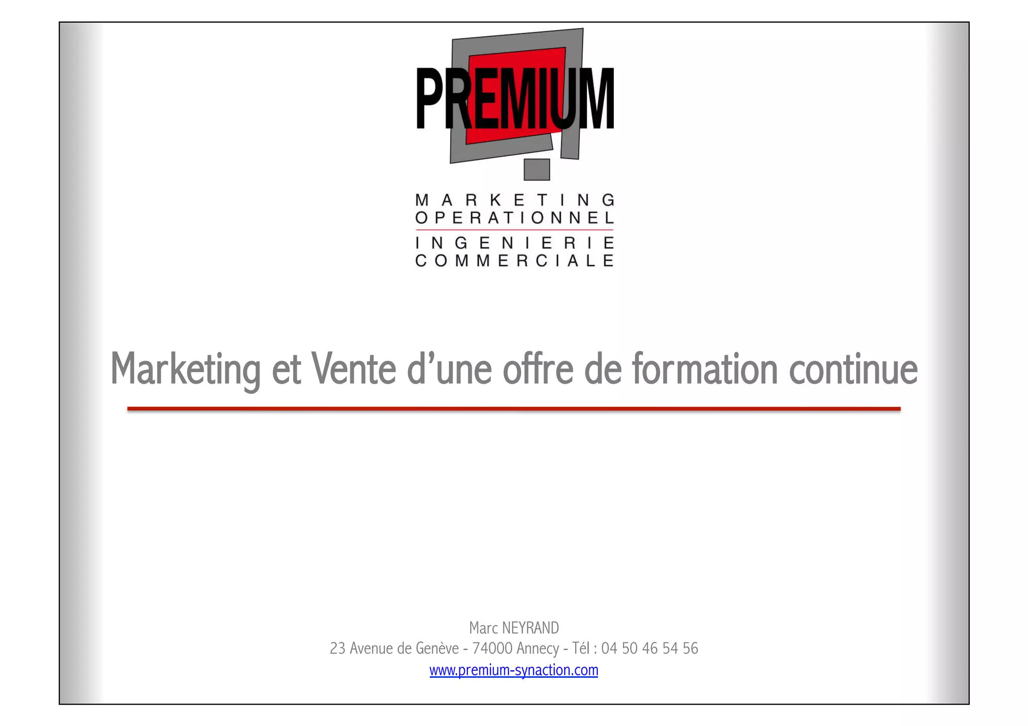Le document analyse le marché de la formation continue, évalué à 28 milliards d'euros, avec des opportunités de croissance pour les entreprises répondant aux besoins individuels des salariés. Il présente aussi l'expertise de Premium dans le marketing opérationnel et le développement commercial, illustrée par le succès mesuré d'une collaboration avec cdaf formation. L'objectif est de passer d'une offre de produit à une offre de service, en mettant l'accent sur des parcours personnalisés pour accroître la satisfaction des clients.