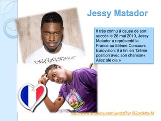 Le document présente divers artistes de la musique française, mettant en avant des figures comme Jessy Matador, Pauline Croze, Diam's et Alpha Blondy. Chaque artiste est associé à ses succès musicaux et à son style distinctif, témoignage de la diversité de la scène musicale française. Il évoque également des projets et albums spécifiques ainsi que l'impact culturel de ces artistes.
