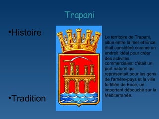 Le projet Comenius multilatéral explore les cultures différentes et les objectifs humains communs des pays participants, en se concentrant sur la ville de Trapani, une zone à forte tradition maritime. Trapani, connue pour son port naturel et son histoire riche liée à la pêche et au commerce, met en valeur des événements culturels comme la procession des ‘misteri’ et le rite de la mattanza. La gastronomie sicilienne, influencée par diverses civilisations, est mise en avant avec des plats traditionnels tels que le couscous et les arancine, tout en soulignant l'importance des vins et des agrumes dans l'économie locale.
