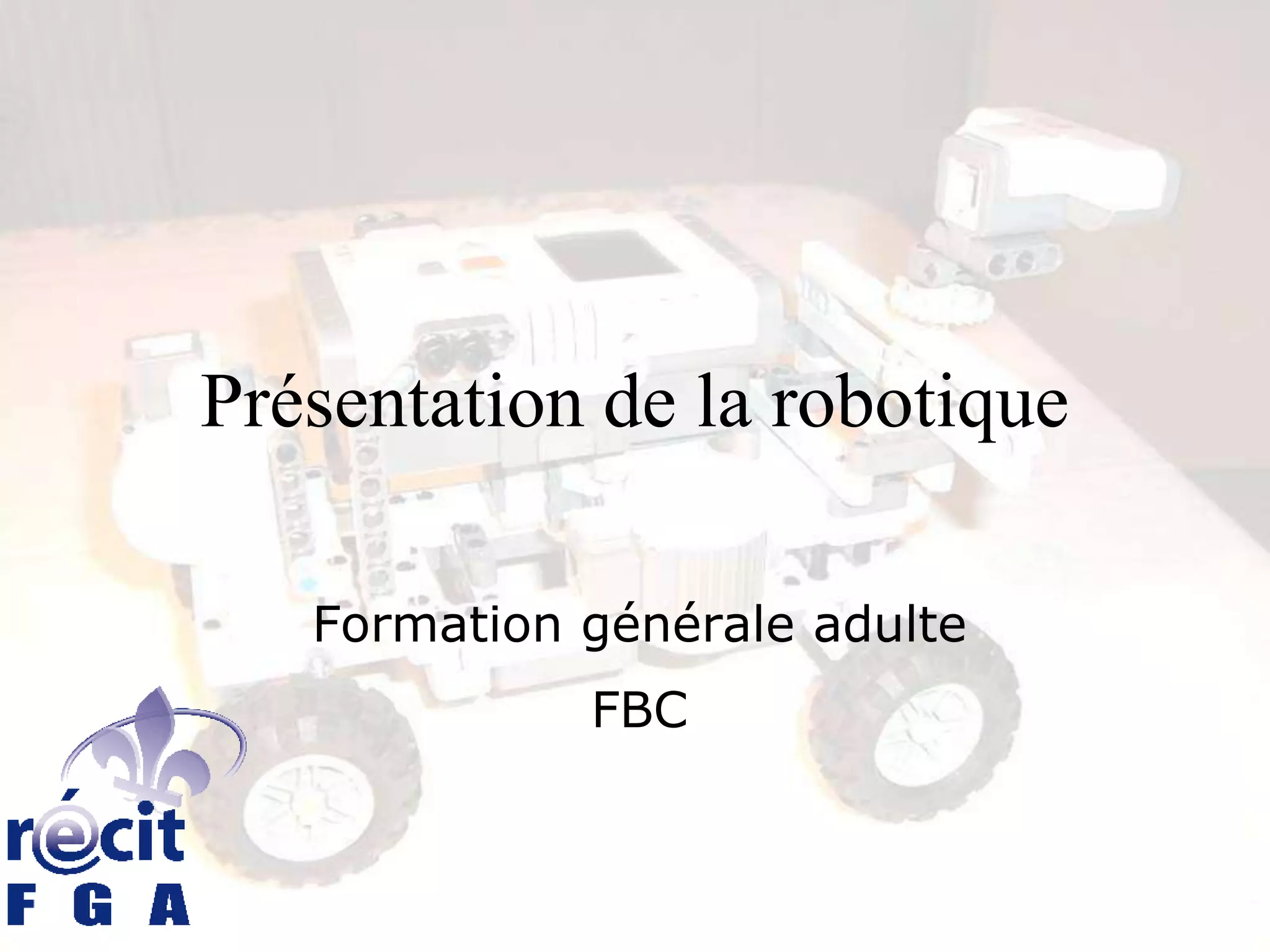 Ce document présente une formation sur la robotique pour adultes, axée sur la programmation de robots à l'aide du matériel Lego et du logiciel Lego Mindstorms. Les participants apprennent à construire et programmer des robots, explorer des défis, et expérimenter avec divers capteurs et moteurs. Des activités d'apprentissage sont proposées pour différents cours, avec un appel à volontaires pour évaluer de nouvelles situations.