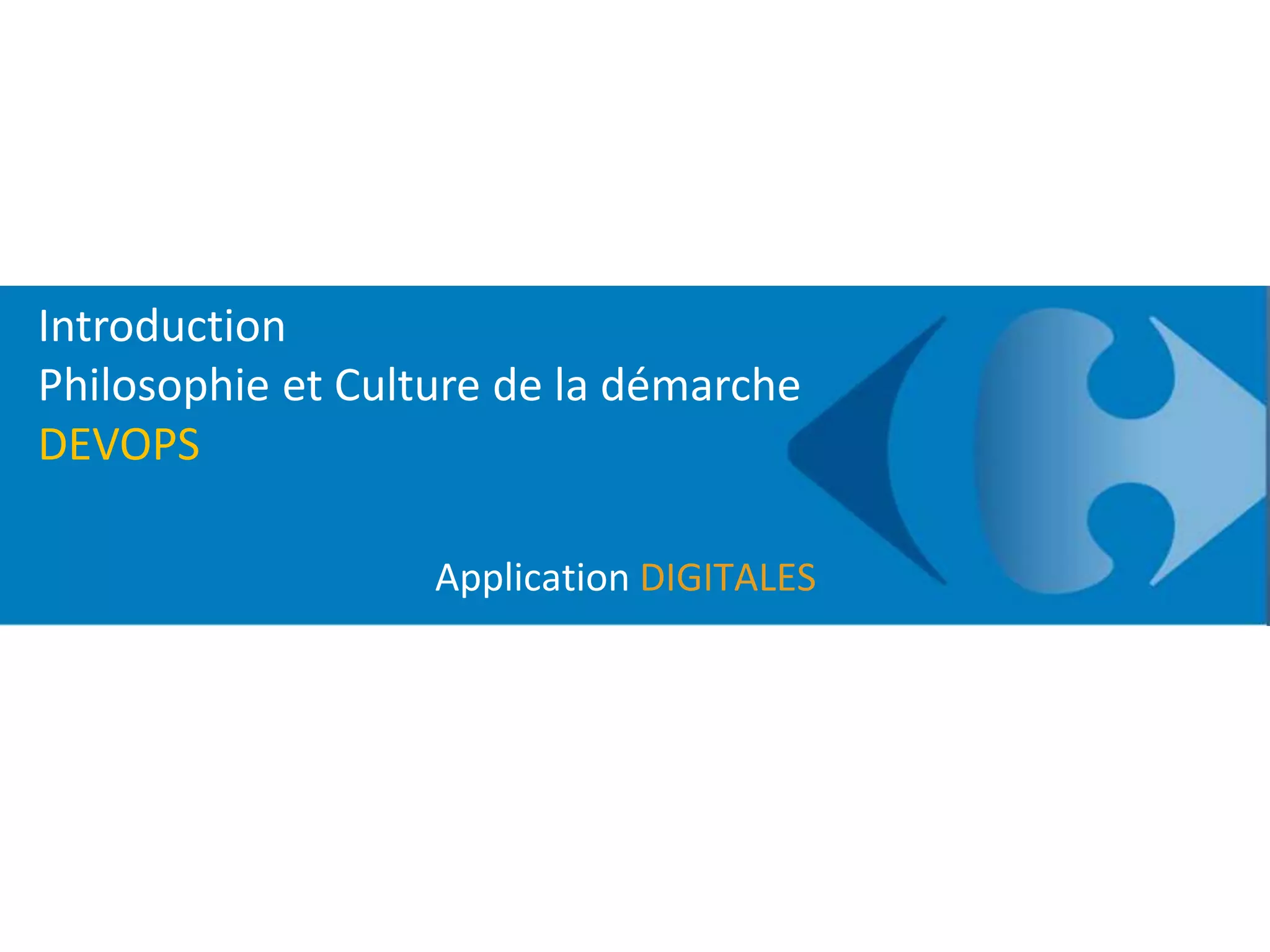 Le document présente la philosophie et les processus de DevOps, mettant en avant l'importance de l'agilité, de la collaboration entre les équipes de développement et d'opérations, et de l'automatisation dans le cycle de vie des applications. Il souligne la nécessité d'une transformation culturelle et organisationnelle pour améliorer la productivité et la satisfaction client, tout en intégrant des méthodes agiles et des pratiques de surveillance continue. En outre, le texte évoque l'importance de la gestion de l'infrastructure par code et des processus de déploiement continu pour optimiser le temps de mise sur le marché.