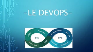 Le document présente le concept de DevOps, une philosophie intégrant développement et opérations pour améliorer l'interopérabilité et la collaboration entre équipes. Il détaille les principes fondamentaux tels que la culture, l'automatisation, la mesure et le partage, ainsi que des outils et pratiques pour l'intégration et le déploiement continus. En conclusion, DevOps repose sur une culture d'expérimentation et d'apprentissage continu, visant à ajouter de la valeur à l'organisation.