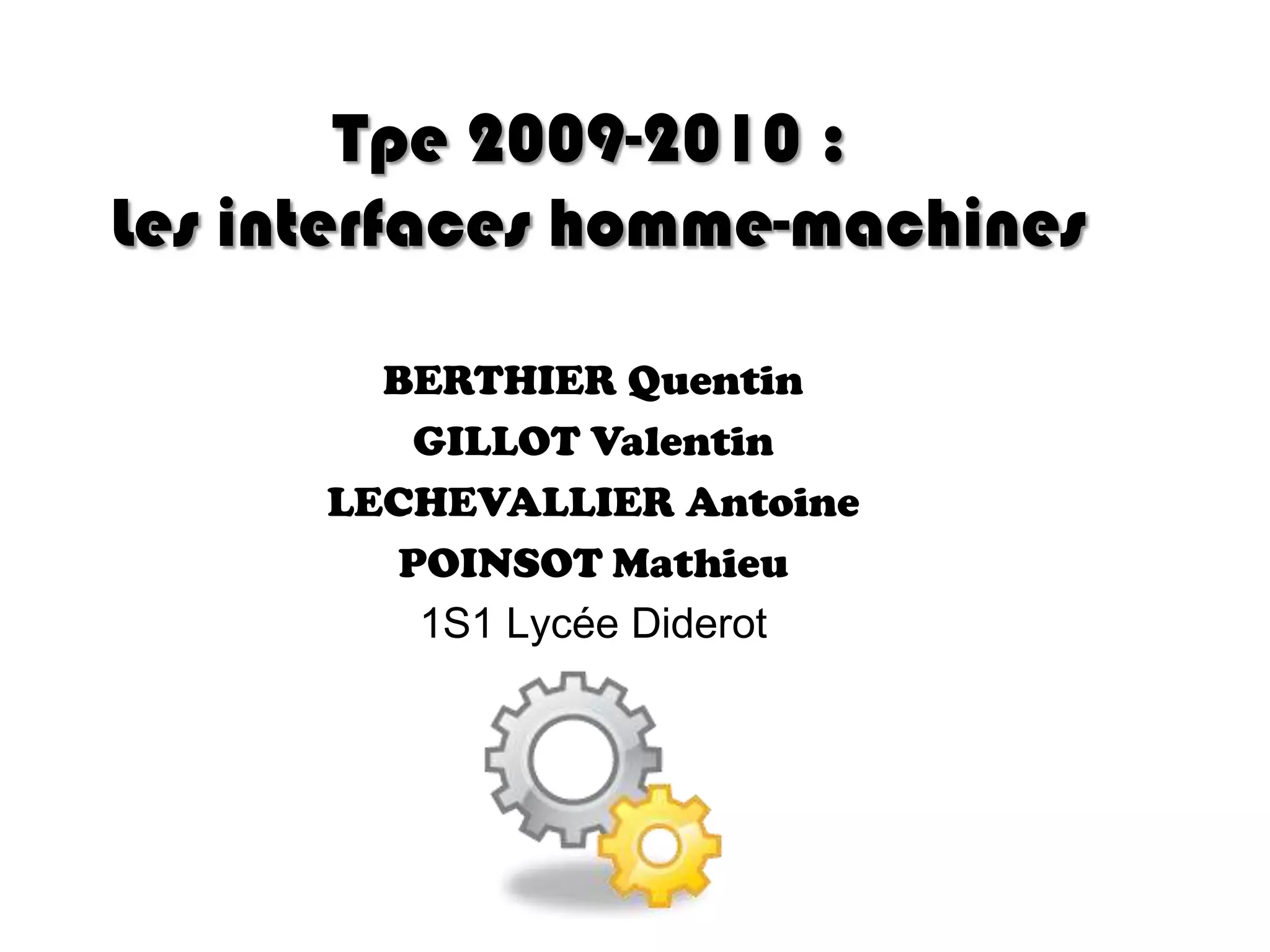 Le document présente diverses interfaces homme-machine, y compris la reconnaissance vocale et faciale, ainsi que des technologies telles que les dispositifs tactiles et gestuels. Il aborde également la numérisation et des concepts avancés comme l'implant neuronal. En conclusion, l'équipe remercie l'audience pour son attention.