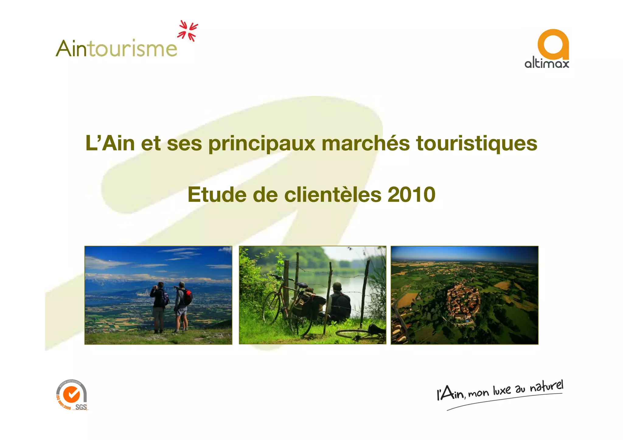 L'étude de la clientèle touristique dans l'Ain en 2010 identifie les principales clientèles cibles, notamment la clientèle belge francophone, le bassin lyonnais et le sud-bourgogne, ainsi que leurs motivations et comportements. Aintourisme a mis en place des stratégies pour améliorer l'attractivité du département en créant des synergies entre les acteurs du tourisme et en promouvant l'offre locale. Les résultats soulignent un besoin d'améliorer la notoriété de la destination, actuellement perçue comme peu dépaysante et manquant d'activités culturelles.