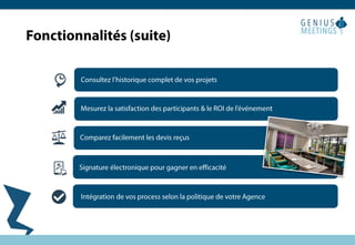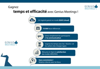 Le 1er self meeting tool permet de créer un site web dédié à votre événement. Il offre la possibilité de gérer les demandes de lieux sans coûts supplémentaires, simplifiant ainsi l'organisation d'événements. Cet outil révolutionnaire facilite la planification pour les utilisateurs.