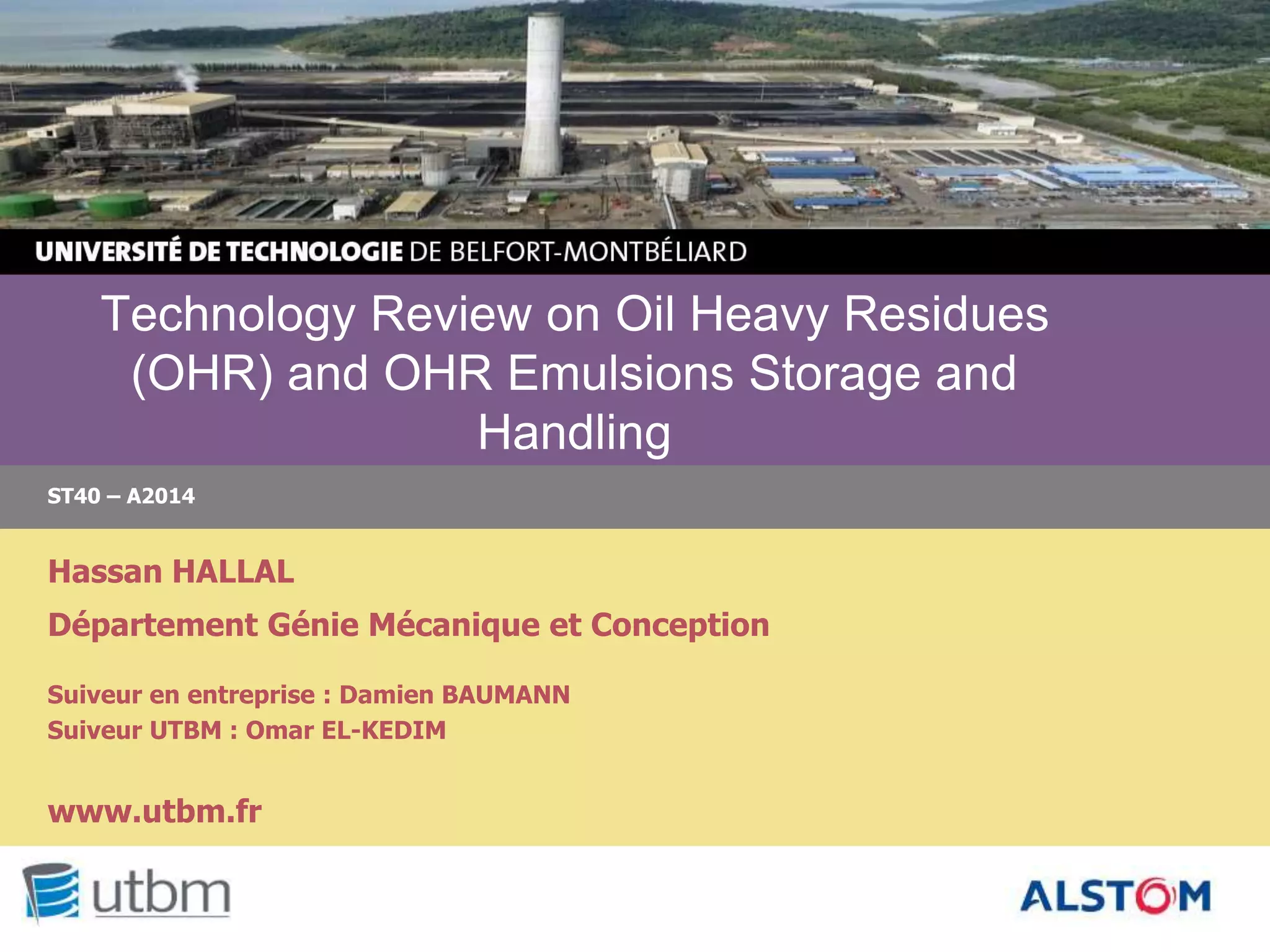 Le document présente une revue technologique sur le stockage et la manipulation des résidus lourds de pétrole (OHR) et de leurs émulsions. Il aborde les défis d'utilisation de nouveaux combustibles liquides, ainsi que les spécifications des équipements nécessaires pour leur gestion. Des recommandations techniques et des études de cas sont fournies pour optimiser le stockage et le transport de ces matériaux complexes.