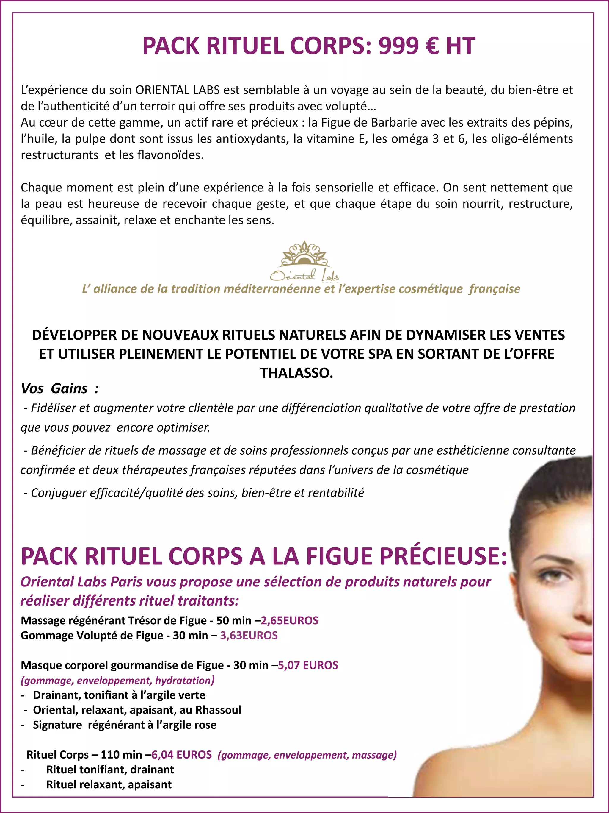 Oriental Labs propose une gamme de soins basée sur la figue de barbarie, offrant des produits naturels qui nourrissent et restructurent la peau. La marque met en avant des rituels de massage et de soins conçus par des experts pour fidéliser et élargir la clientèle. Des formulations concentrées et rigoureusement sélectionnées garantissent l'efficacité et la sécurité des produits proposés.