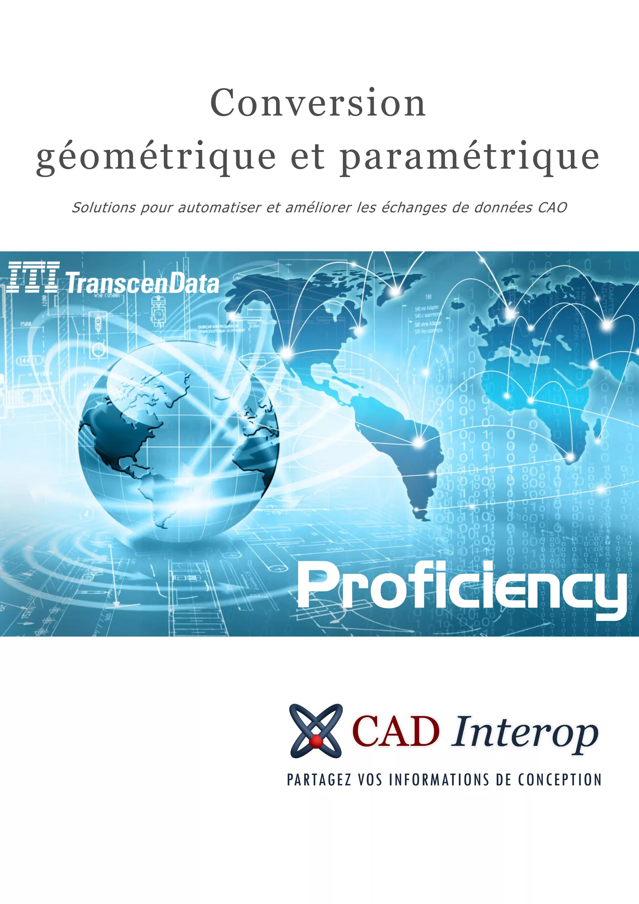 Proficiency est une application permettant aux ingénieurs d'automatiser et d'améliorer les échanges de données CAO en assurant une interopérabilité entre six principales applications. Elle offre des outils pour la conversion de géométrie, la migration 3D et la collaboration, tout en garantissant la conformité des données et une interface accessible par navigateur. Cad Interop, en tant qu'acteur majeur, fournit des solutions d'interopérabilité pour les données CAO depuis plus de 15 ans.