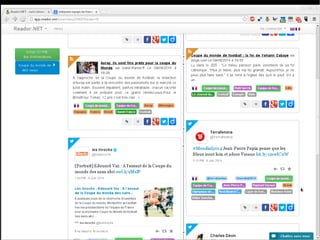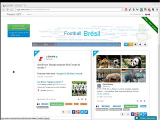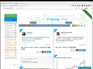Reador.net est un outil de filtrage sémantique de nouvelles qui permet un accès rapide à l'information, traitant jusqu'à 100 000 articles par jour. Le système utilise une infrastructure puissante avec 4 serveurs disposant de 150 Go de RAM et 20 cœurs pour gérer plus de 332 millions de triplets de données. Il est open source et conçu pour organiser la veille quotidienne des utilisateurs.