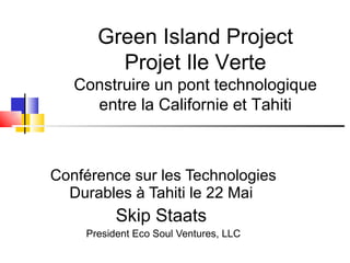 La conférence sur les technologies durables à Tahiti a présenté des projets tels que le Green Island Project, visant à établir un pont technologique entre la Californie et Tahiti. Elle a mis en avant la digestion anaérobie et la pyrolyse comme méthodes écologiques pour convertir des déchets en énergie, tout en mentionnant l'importance des énergies solaires et éoliennes. Le projet ambitionne de créer des infrastructures adaptées aux besoins des communautés isolées, soulignant une approche durable pour les générations futures.
