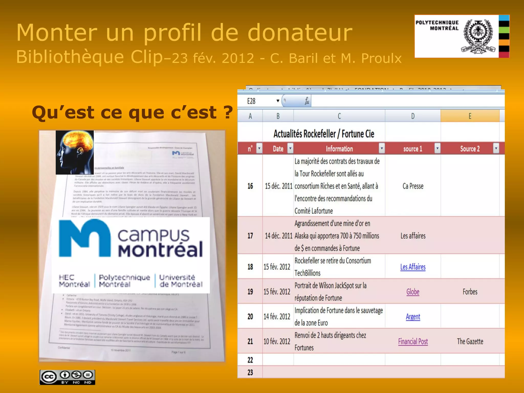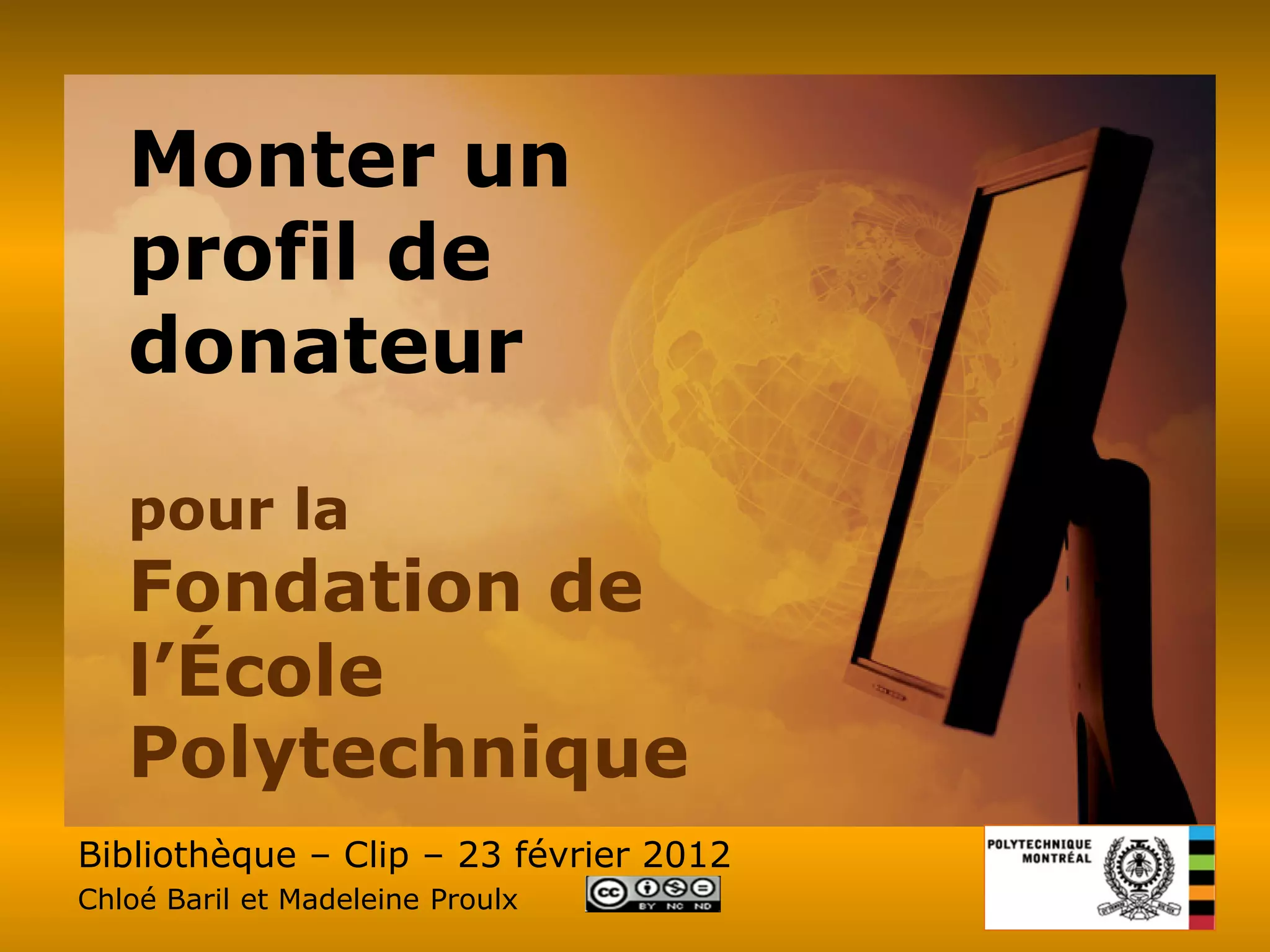 Le document décrit le processus de création d'un profil de donateur pour la fondation de l'École Polytechnique, incluant les informations à collecter et les sources à utiliser. Il présente également une méthodologie pour organiser, vérifier et classifier les données sur les donateurs potentiels. Les exemples de profils et l'importance de la mise à jour régulière sont également abordés.