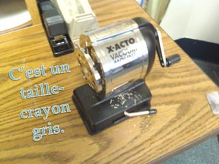 Le document décrit divers objets, notamment des sacs à dos, un feutre orange, un ordinateur noir, un dictionnaire rouge, une cassette grise et des cahiers de couleurs rouge, bleu et vert. Ces éléments sont présentés de manière succincte. L'auteur cite plusieurs articles appartenant à une liste.