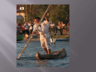 La régate de 'is fassonis' se déroule chaque année à Santa Giusta, mettant en avant des bateaux traditionnels en roseaux utilisés autrefois pour la pêche et le transport. La course est accompagnée de manifestations folkloriques et de spécialités culinaires locales, célébrant aussi la fête de Saint Sauveur, où des participants portent une statue en courant sur un parcours symbolique. En parallèle, l'art de la broderie, essentiel à la culture sarde, se transmet de génération en génération, illustré par des pièces emblématiques comme le châle de Oliena et le filet de Bosa.