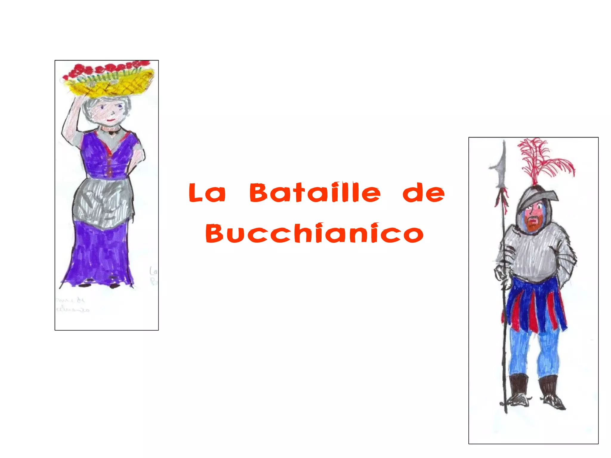 La bataille de Bucchianico se déroule dans les années 1330, lorsque la ville de Chieti attaque le village de Bucchianico pour agrandir son territoire. Grâce à un stratagème suggéré par leur saint patron, la population de Bucchianico parvient à décourager les assaillants sans avoir à se battre, menant à une victoire sans effusion de sang. Le banderese et le sergentiere, figures importantes de la défense, sont célébrés pour leur rôle dans la protection de leur village.