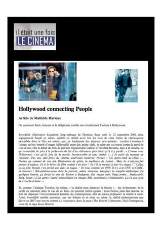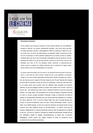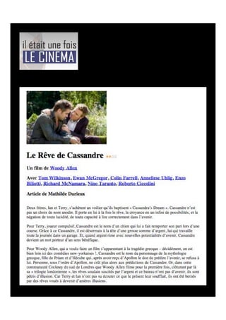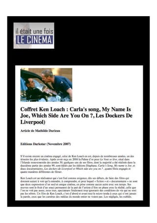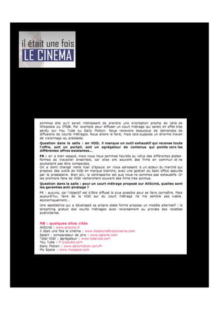 Le document est un sommaire d'un press book récapitulant des critiques de films, des interviews de réalisateurs et des chroniques sur le cinéma. Il inclut également des sections sur des coffrets DVD de divers films. La liste couvre une variété de films et d'artistes de différentes époques et styles.