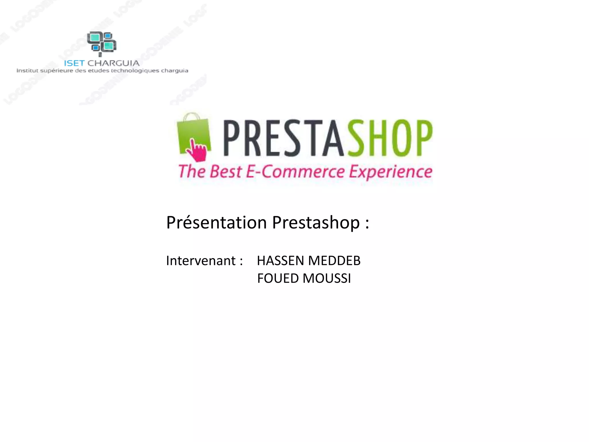 PrestaShop est une solution open-source pour créer et gérer des boutiques en ligne, fondée en 2005 par Bruno Léveque et Igor Schlumberger, avec une communauté active de 300 000 membres. Elle offre plus de 310 fonctionnalités, une architecture modulaire, et un back-office intuitif, permettant une personnalisation et une évolutivité. Les avantages incluent une solution gratuite, une bonne rapidité, ainsi qu'un écosystème de support et d'extensions significatif.