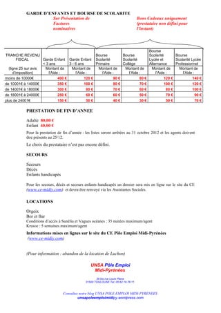 Les syndicats et élus de Pôle Emploi Midi-Pyrénées ont convenu des prestations régionales pour 2012, y compris des aides aux vacances et des primes liées aux événements familiaux. Les prestations sont accessibles aux agents en CDI, CDD et contrats aidés, avec des conditions d'attribution précises. Des informations détaillées sur ces prestations sont disponibles sur le site du CE ainsi que sur le blog de l'unsa Pôle Emploi Midi-Pyrénées.