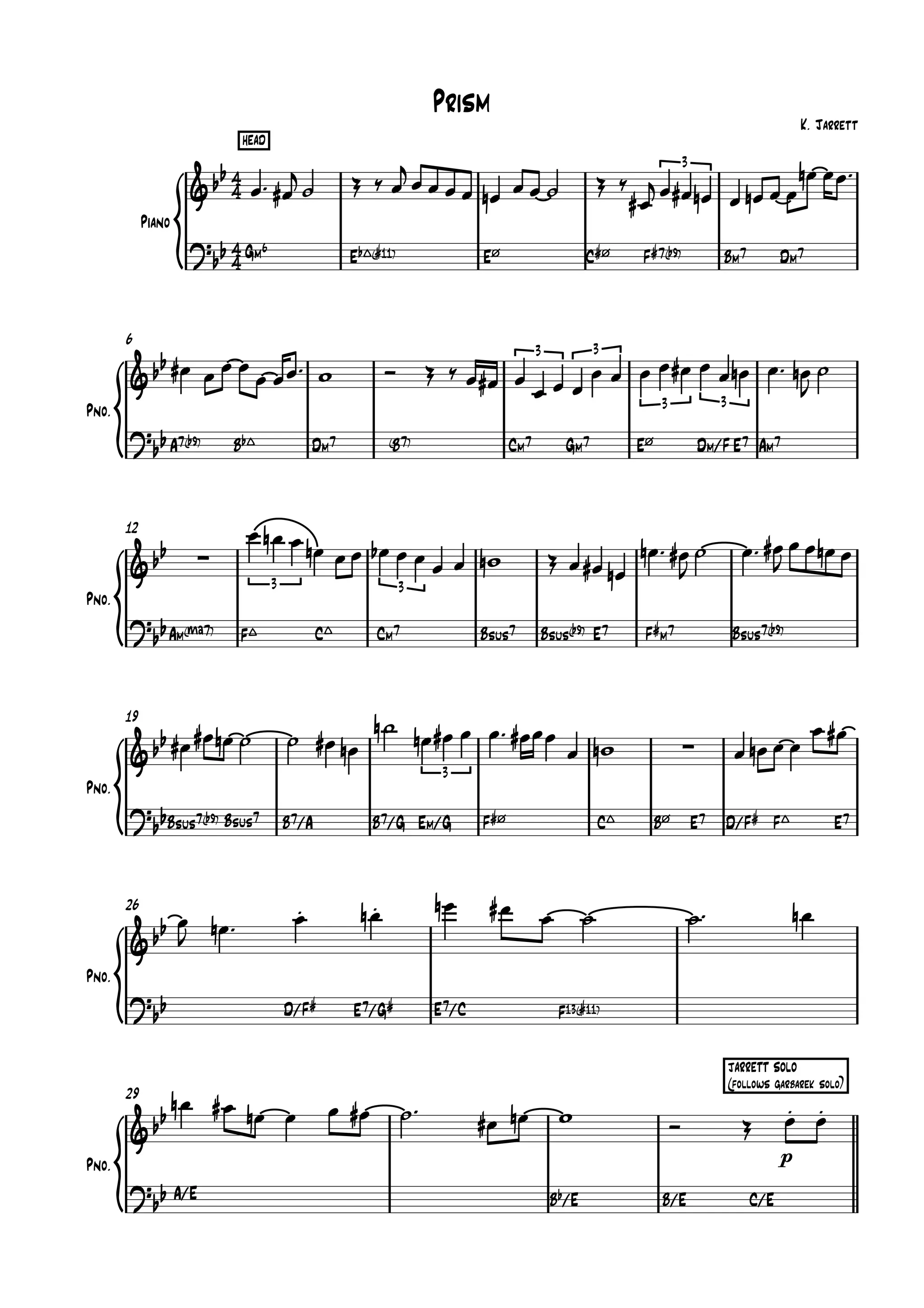 Le document semble contenir des notations musicales ou des instructions pour un morceau de musique, avec des références à différents accords et phrases. Il évoque des mélodies jouées au piano et des accompagnements de basse. La structure suggère une improvisation ou une performance orchestrale.