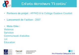 Support de la présentation du Prix Prévention Délinquance 2009