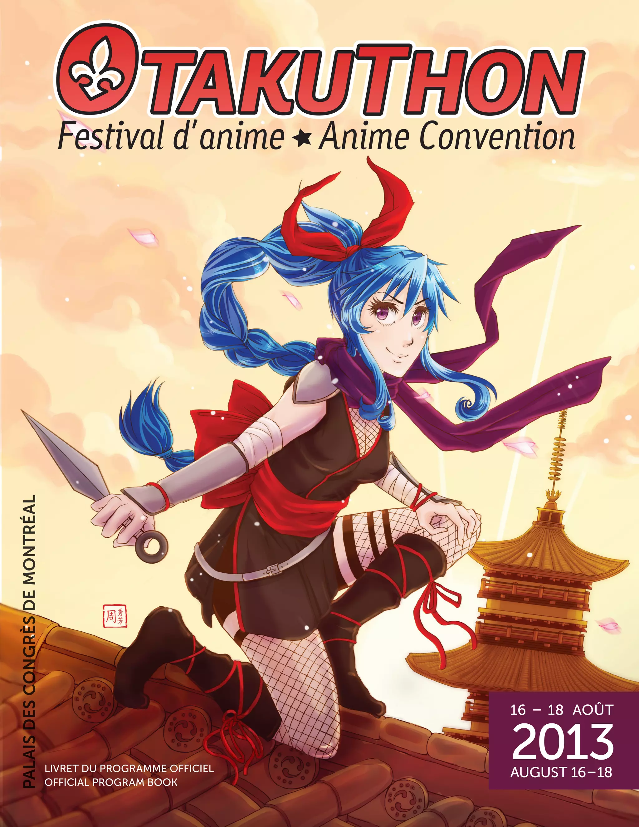 Le livret du programme officiel d'Otakuthon 2013 présente un événement célébrant la culture pop japonaise à Montréal, incluant des activités variées telles que des concerts, des panels et des projections d'anime. La présidente, Mimmy Shen, met en avant de nouvelles attractions tout en remerciant le personnel et les bénévoles pour leurs efforts. Ce festival continue d'évoluer, combinant culture et innovation technologique pour enrichir l'expérience des participants.