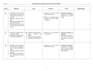 La séquence 03 de 2012-2013 porte sur des fonctions de référence, où les élèves développent des algorithmes pour explorer des concepts tels que la racine carrée et la valeur absolue. Le programme inclut des exercices pratiques et des démonstrations sur la monotonie des fonctions ainsi que sur la position relative des courbes. Les élèves sont également encouragés à intégrer l'algorithmique dans leur apprentissage hors temps scolaire.