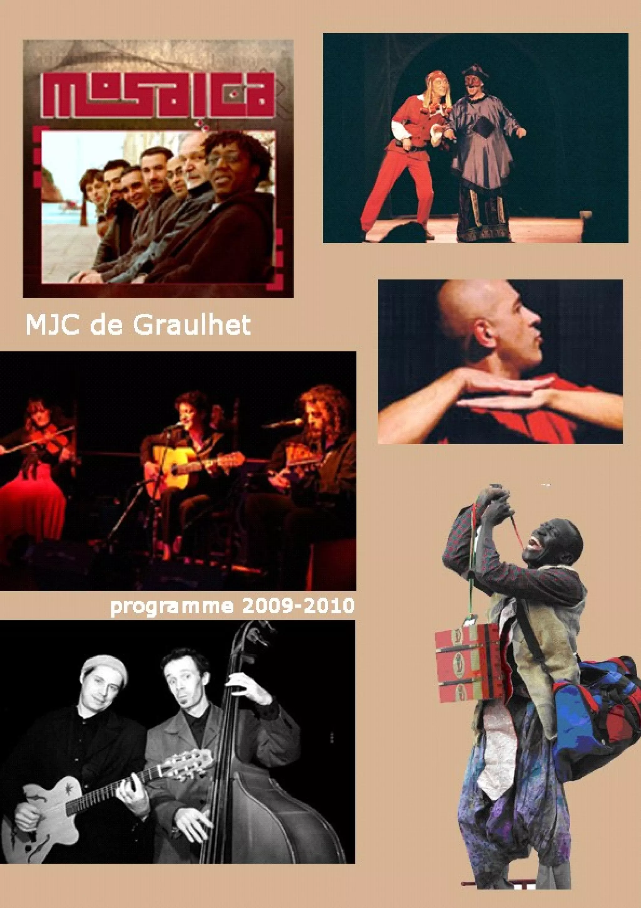 Le document présente un programme culturel avec divers spectacles, notamment le théâtre 'Traversées Africaines' et des concerts de musique flamenco, française et arabo-andalouse. Chaque événement met en avant des artistes et des performances uniques, explorant des thèmes variés de l'humour à la douleur des clandestins. Les tarifs pour assister à ces événements varient selon le public, avec des propositions pour tous les âges.