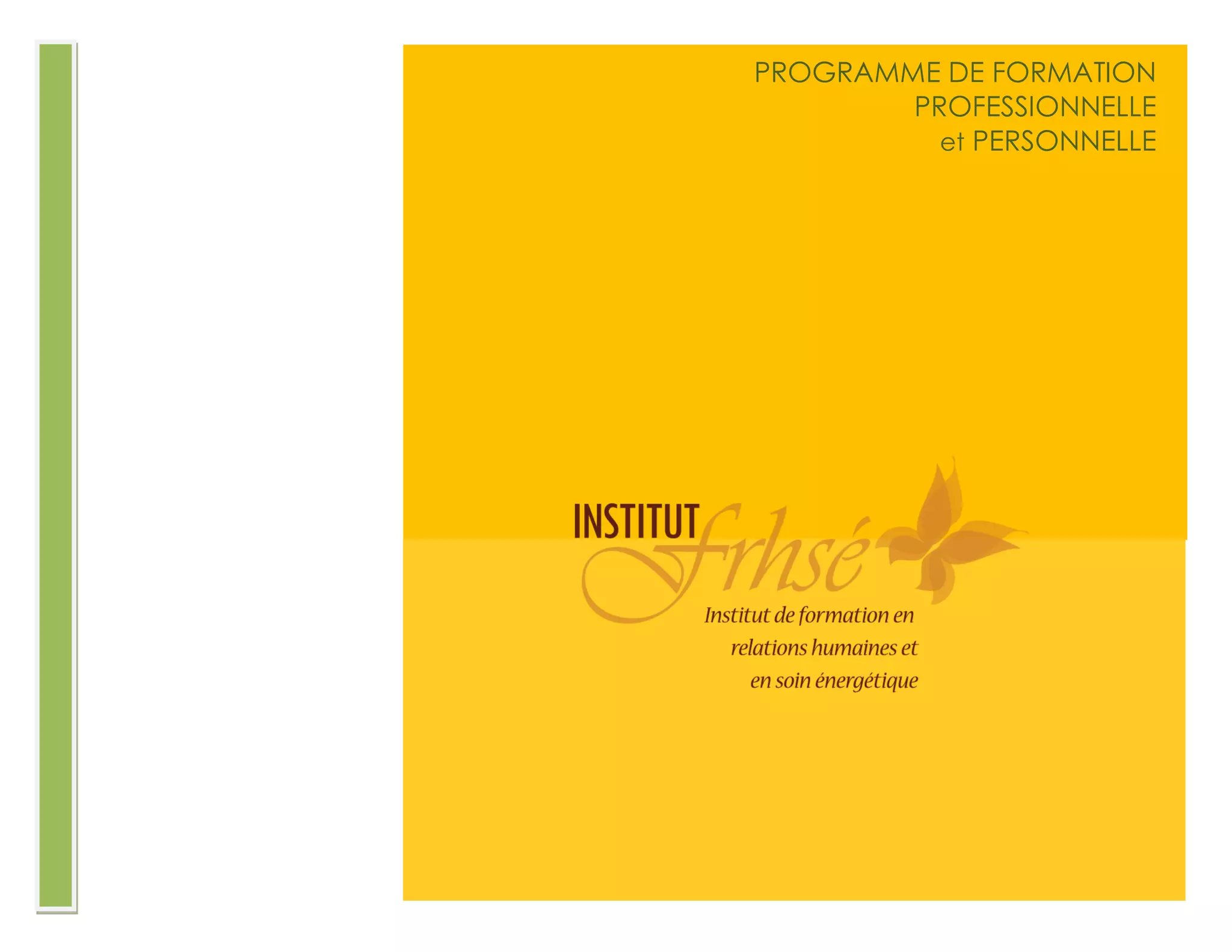 Le programme de formation en relations humaines et en soins énergétiques de l'institut, conçu par Odette Pelletier, offre un cursus de 2400 heures réparti sur deux ans, visant à enrichir les compétences personnelles et professionnelles des apprenants. Composé de 16 ateliers et 7 stages, il aborde les dimensions spirituelle, mentale, émotionnelle et physique de l'être humain, tout en enseignant des techniques pratiques comme le dialogue avec le subconscient. Ce programme est destiné à ceux désirant orienter leur carrière vers le bien-être personnel et collectif tout en intégrant des connaissances en soins énergétiques.