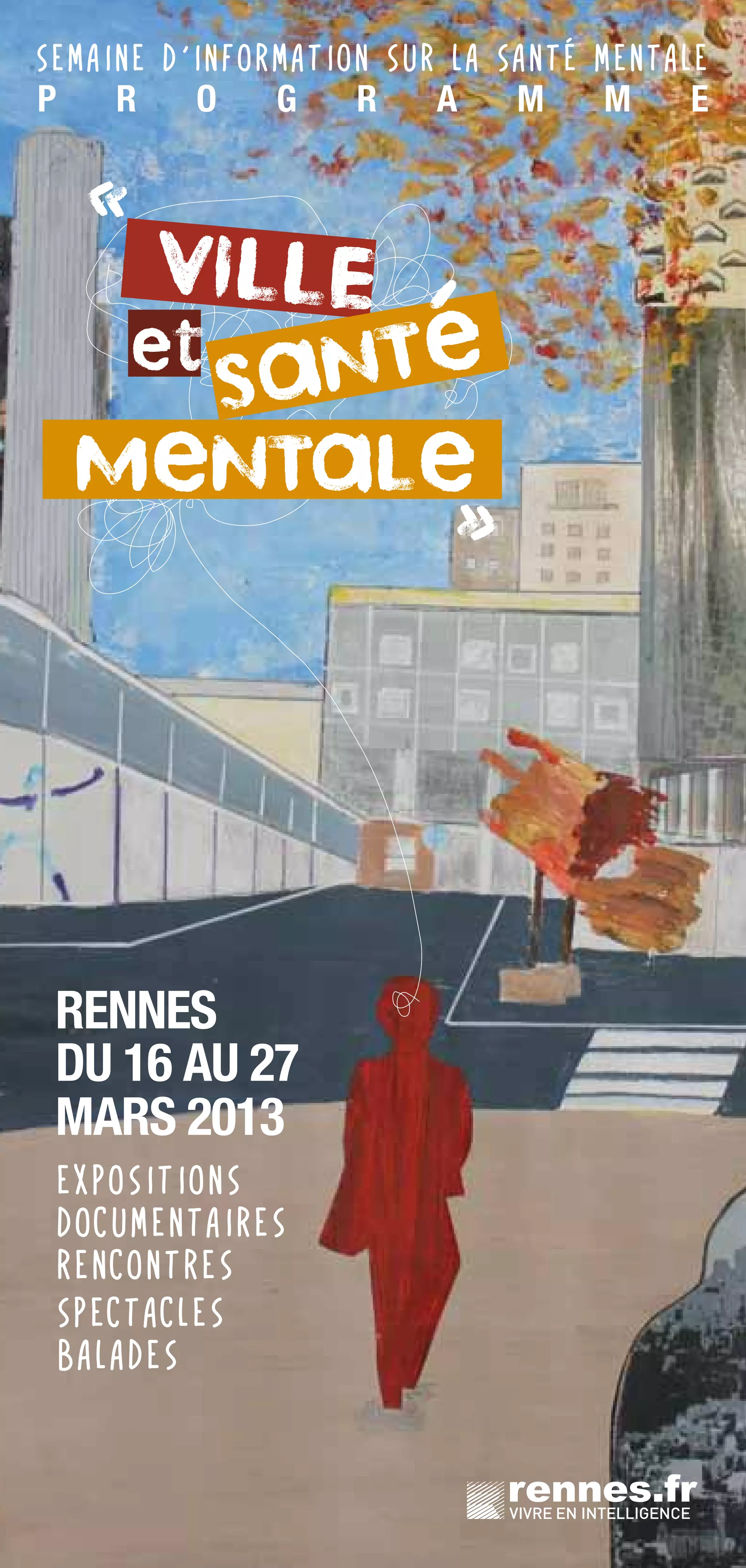 La semaine d'information sur la santé mentale à Rennes, du 16 au 27 mars 2013, se concentre sur le thème « ville et santé mentale », proposant des rencontres, spectacles et débats pour sensibiliser le public aux enjeux de santé mentale. Des activités variées incluent des projections de films, des ateliers d'écriture, et des tables rondes avec des usagers et des professionnels pour échanger sur les impacts de l'environnement sur la santé mentale. L'événement vise à favoriser la coopération entre citoyens, proches, acteurs de santé et professionnels pour améliorer le bien-être collectif en ville.