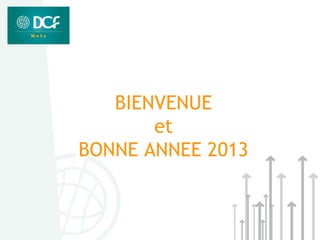 La plénière du 15 janvier 2013 présente les activités et programmes de la fédération DCF pour l'année, axés sur la dynamisation de la communication et le développement. Divers événements sont programmés, incluant des interventions professionnelles et des visites d'entreprises, avec un fort accent sur l'engagement des jeunes dans le secteur commercial. Plusieurs commissions sont mises en avant, chacune ayant des objectifs spécifiques, allant de l'enseignement à l'innovation.