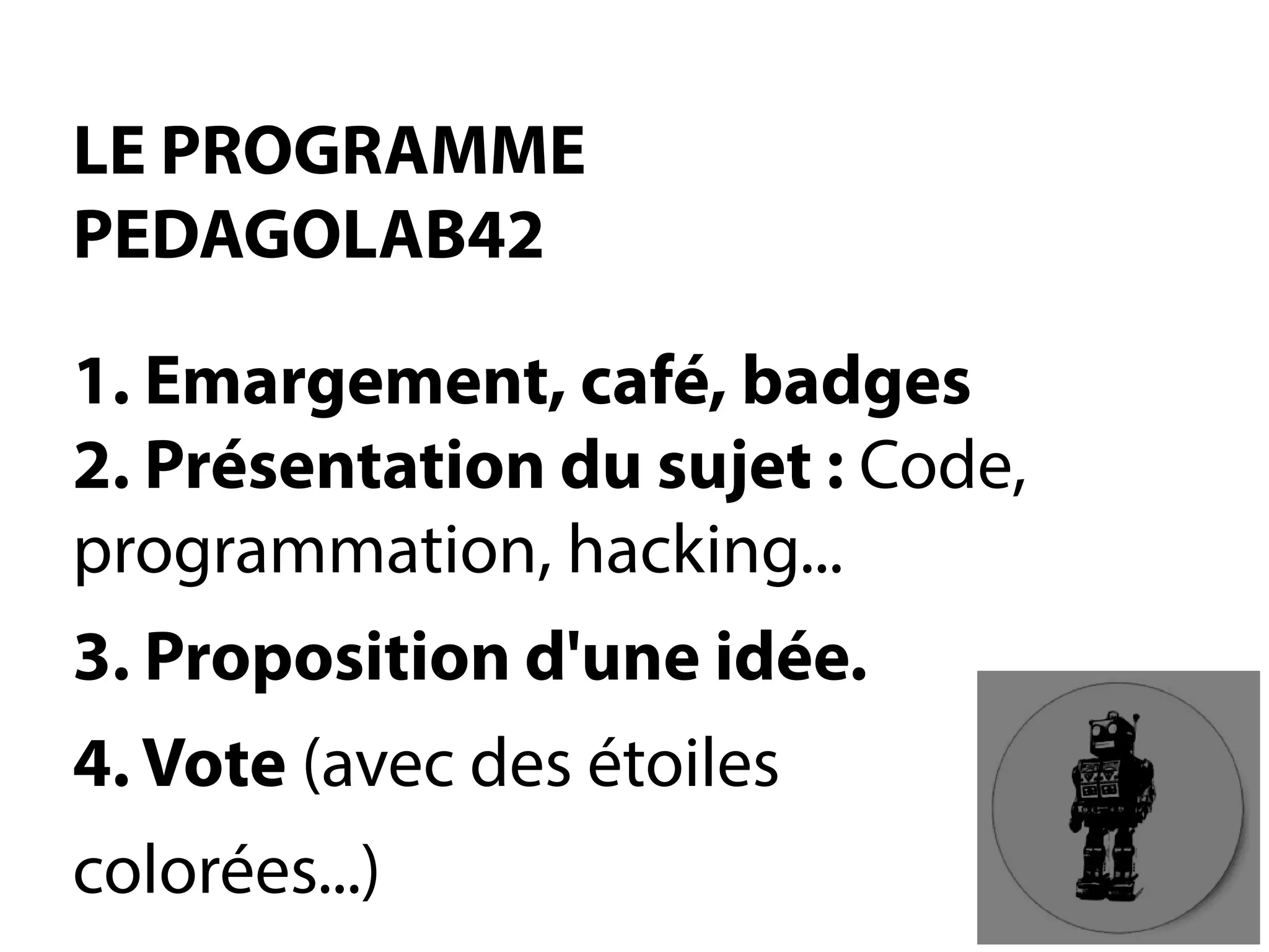 Le programme Pedagogolab421 aborde la thématique du code, de la programmation et du hacking à travers des votes, des présentations et la création de prototypes ludiques. Le document souligne divers enjeux et controverses liés à la littératie numérique et la nécessité de définir clairement les outils d'apprentissage. Des spécialistes de différents horizons participent à l'événement, visant à concevoir des outils éducatifs adaptés aux enfants.