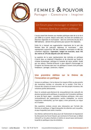 Le forum national, organisé les 7 et 8 décembre 2012 à Paris, vise à encourager et inspirer les femmes dans leur carrière politique, à travers des discussions sur l'innovation et les défis ayant trait à la parité. Malgré des avancées notables en matière de représentation féminine, des disparités subsistent dans les mandats élevés, avec seulement 14% de maires et 27% de députés femmes. L'événement, animé par diverses personnalités politiques, inclura des débats interactifs sur les actions à entreprendre pour promouvoir la parité en politique.