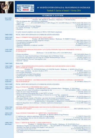 Le congrès de la Société Française d'Angéiologie s'est tenu à Paris les 31 janvier et 1er février 2014, réunissant des experts de divers pays pour discuter des avancées dans le suivi des patients vasculaires. Les programmes comprenaient des séances sur le tabagisme, le diagnostic des vascularites, les techniques d'exploration vasculaire et les mises à jour sur les traitements de la thrombose. Des ateliers pratiques ont également été proposés, ciblant des thèmes tels que le sevrage tabagique et la compression médicale.