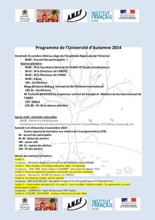 La 6ème université d'automne a abordé les impacts de l'éducation artistique sur l'enseignement du français langue étrangère à travers divers ateliers allant de l'utilisation de la vidéo à l'exploration de techniques théâtrales. Ces ateliers visaient à rendre l'apprentissage des langues vivantes plus interactif et créatif en intégrant l'art comme outil pédagogique. Les participants ont eu l'occasion de discuter des méthodes innovantes pour améliorer l'expérience d'apprentissage des élèves.