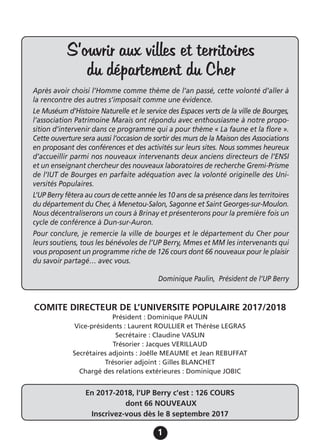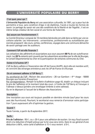 L'Université Populaire du Berry enrichit son programme avec 126 cours, dont 66 nouveaux, axés sur la faune et la flore, tout en célébrant ses 10 ans dans le département du Cher. Le programme propose des conférences, des sorties et des activités pour promouvoir le partage des connaissances sans condition d'âge ni diplôme. Le financement provient principalement des cotisations des membres, soutenues par des subventions municipales et départementales.