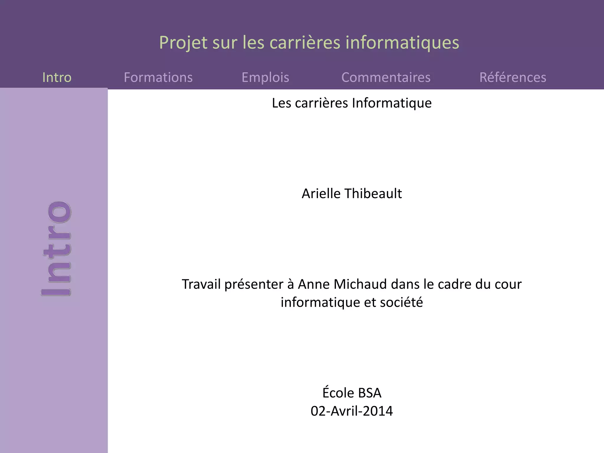 Le document présente différentes carrières informatiques, détaillant les formations et les prérequis nécessaires, ainsi que les salaires et les tâches associées. Il aborde des professions telles que programmeur informatique, informaticien, webmestre et concepteur graphique, en mentionnant les intérêts personnels de l'auteur pour certaines carrières. Les institutions offrant ces formations sont également listées, soulignant la diversité des parcours possibles dans le domaine de l'informatique.