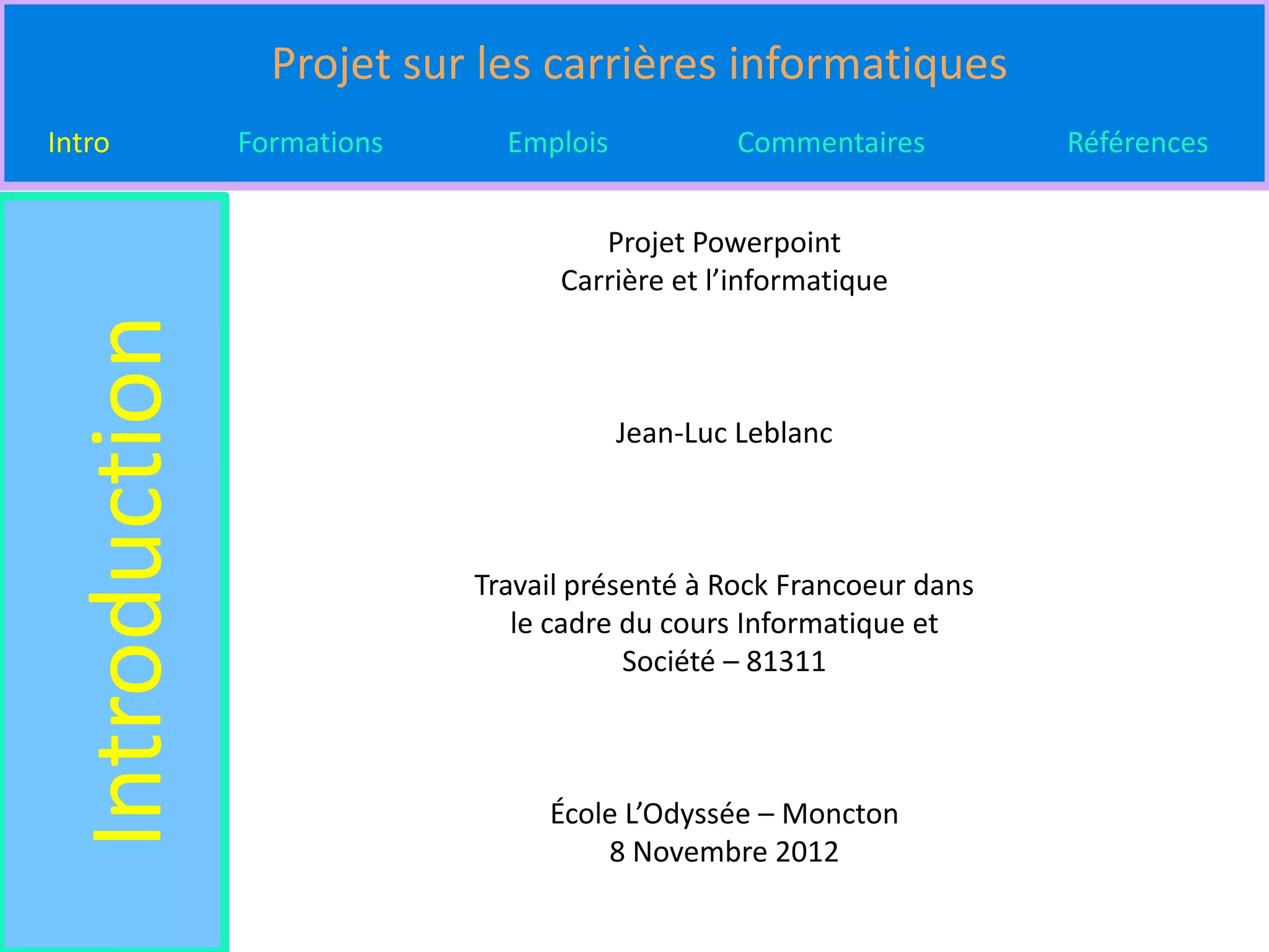 Le document présente un projet sur les carrières informatiques, abordant les formations requises, les salaires et les tâches associées à plusieurs métiers comme formateur en informatique, développeur de jeux vidéo, spécialiste en soutien informatique, et mathématicien. Chaque métier est décrit en termes de pré-requis éducatifs, institutions d'enseignement, et perspectives salariales. Les opinions personnelles de l'auteur sur ses intérêts et préférences professionnelles sont également incluses.